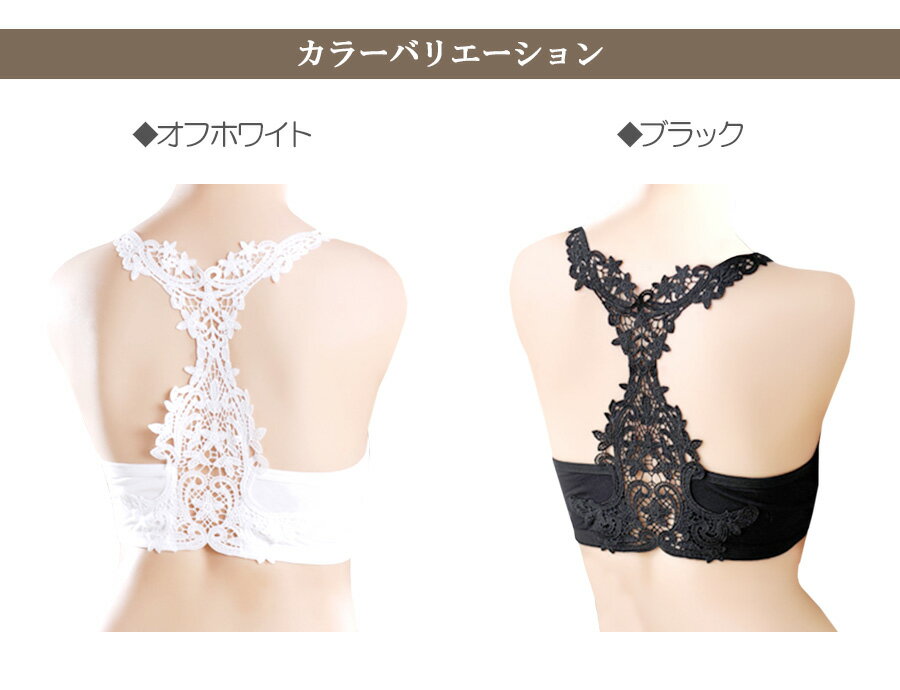 セクシーでキュートな肌見せ、女性らしさを高めるバックの繊細な花柄レースがポイント! ノンワイヤーで圧迫感がなく楽ちん♪